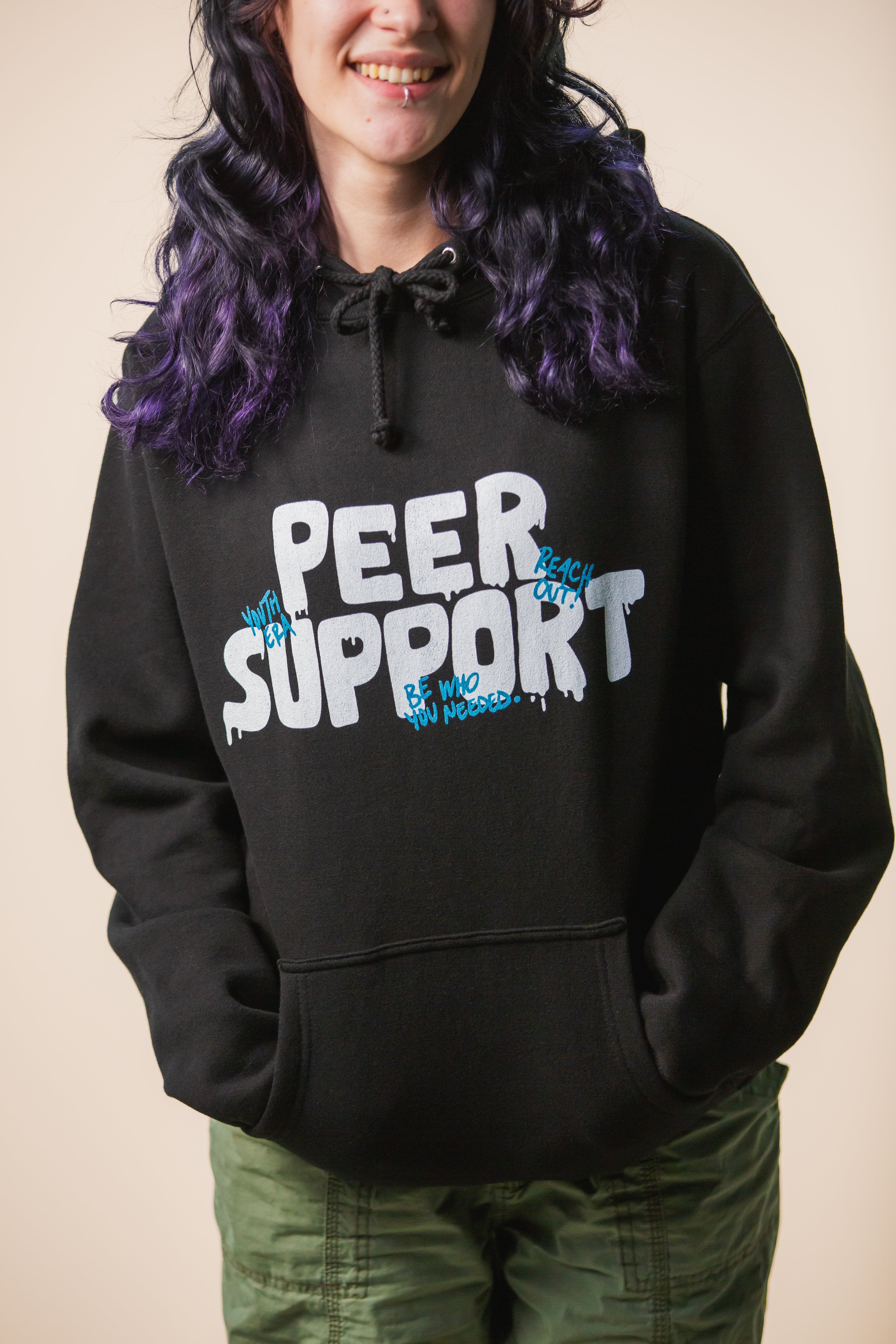 The Peer Support Hoodie celebrates what it means to show up — for yourself and for others. With bold graphics and everyday comfort, it speaks the language of those who know the power of lived experience.